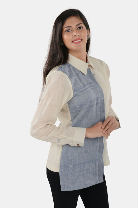 Savay White Blue Kala Cotton Shirt