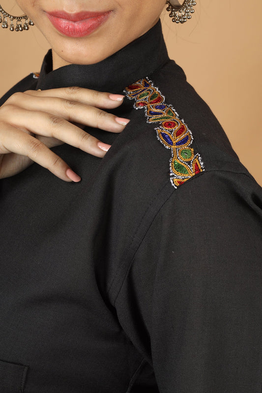 Sold OutKaner Black Red Aak Ajrakh Shirt